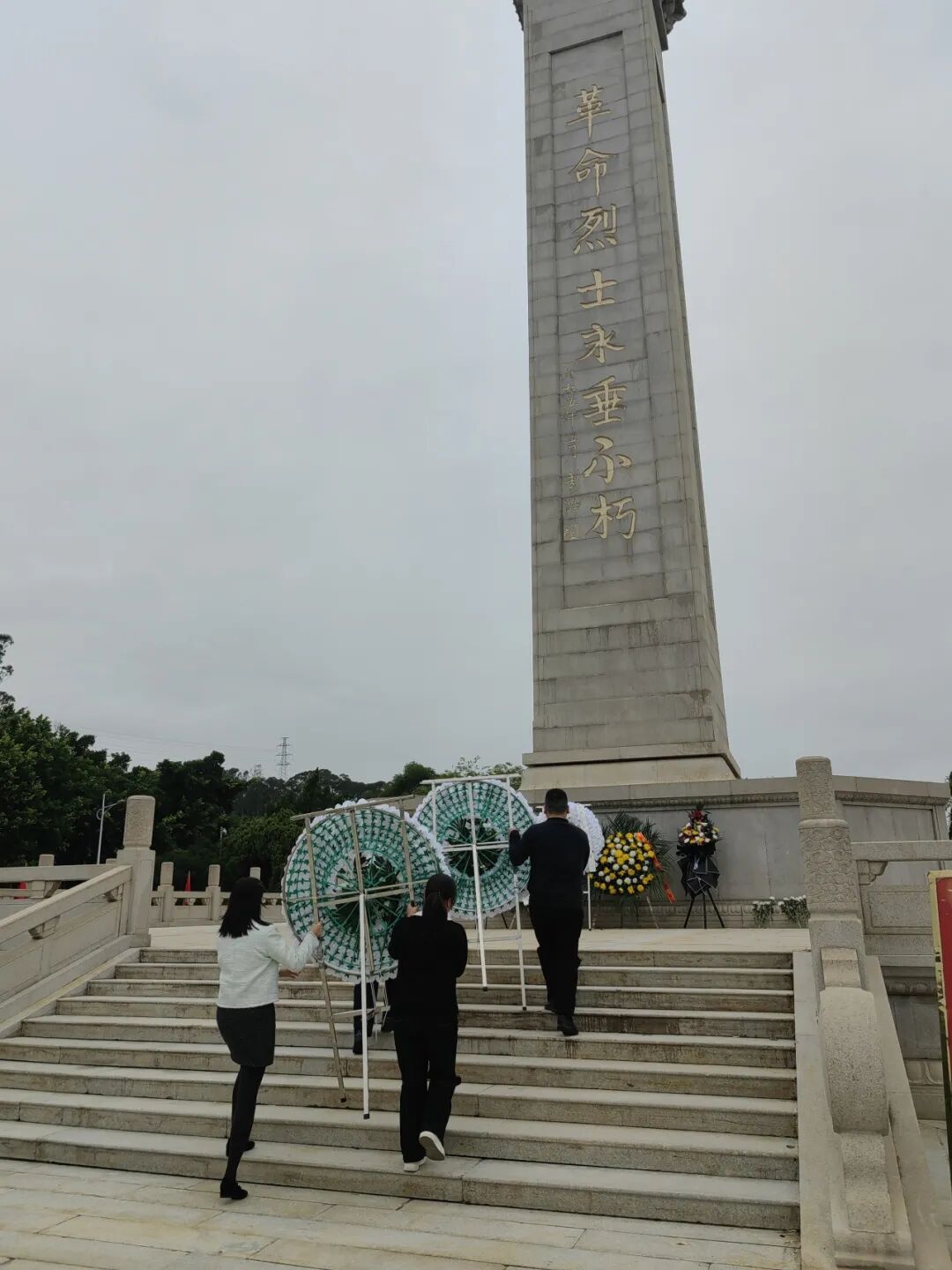 丰碑巍峨,松柏凝翠,烈士陵园内气氛庄严肃穆。大家列队整齐,向革命烈士纪念碑敬献花圈,向为国家富强、社会安定和人民幸福英勇献身的革命先烈致以深切哀思和崇高敬意。大家肃立默哀、奏唱国歌,在庄严肃穆的仪式中重温革命历史、坚定初心使命。随后,大家手持鲜花依次绕行纪念碑,瞻仰烈士丰碑、铭记先烈事迹,在重温峥嵘岁月中接受红色教育和精神洗礼。