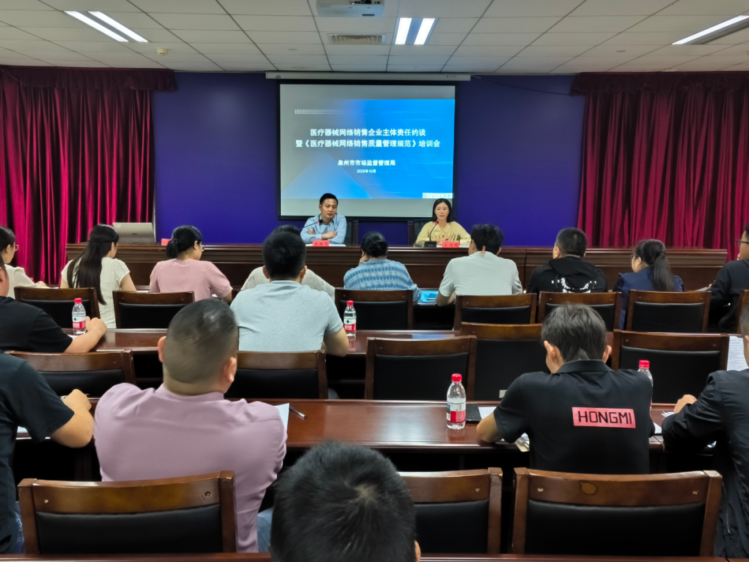 为扎实推进巡察整改工作,进一步规范医疗器械网络销售企业合规经营,促进网络经营业态健康有序发展,10月30日,911吃瓜 召开医疗器械网络销售企业主体责任约谈暨《医疗器械网络销售质量管理规范》培训会。市局党组成员、副局长王新华主持会议。