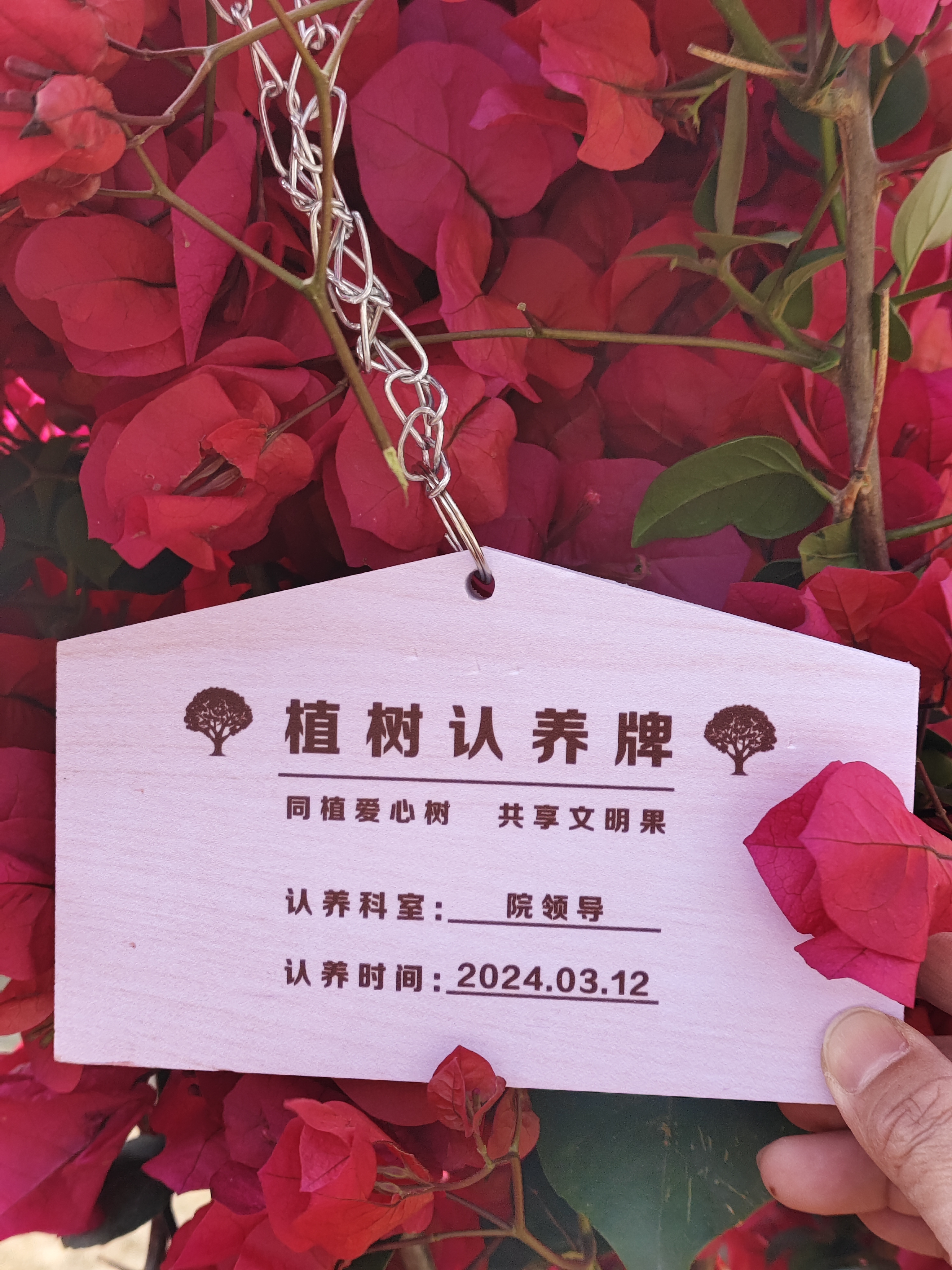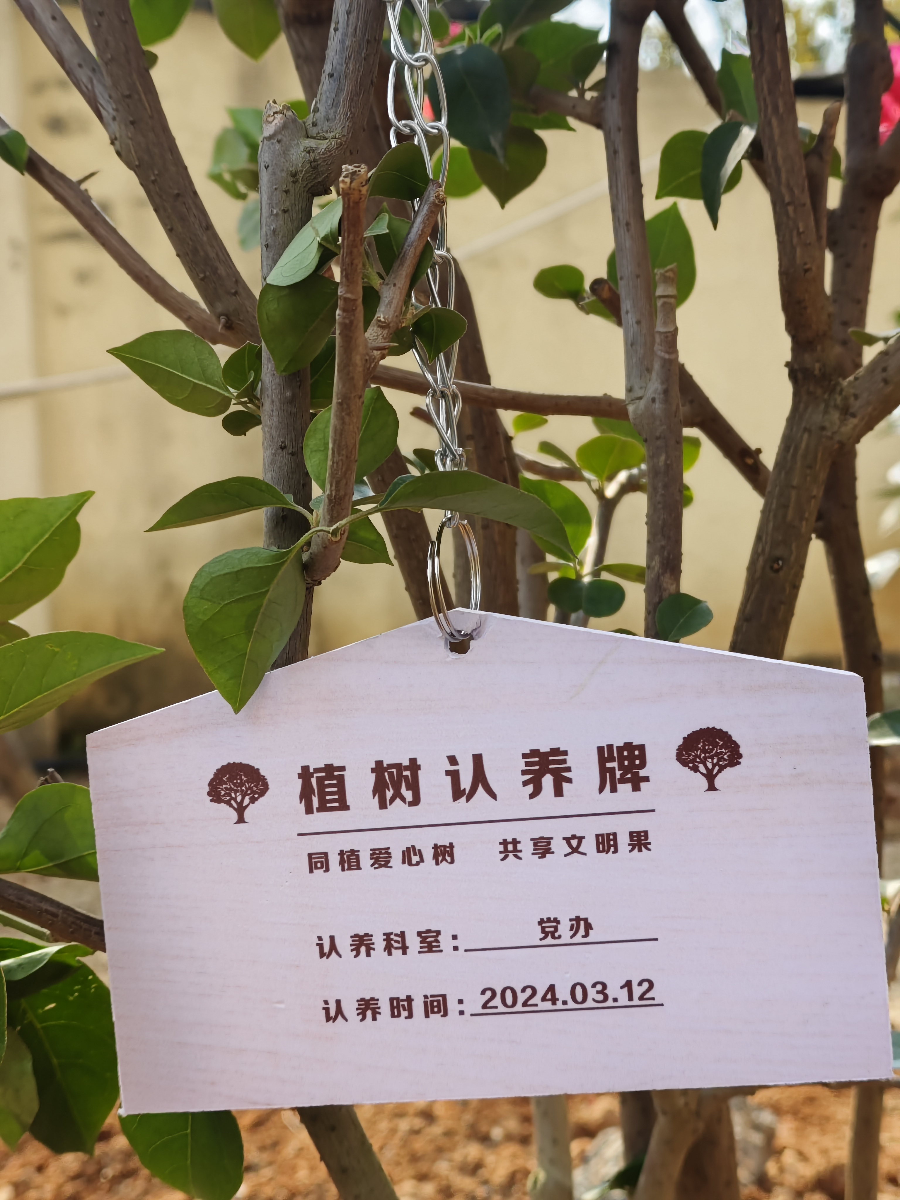 当天的植树活动现场,全体党员干部共同种下一株株树苗,大家热情高涨,干劲十足,以科室为单位,三五成群,挥锨培土,栽植浇水,最后挂上专属的科室认养牌,后续定期养护……当天共种植茶花、含笑、三角梅、炮仗花等多批树苗,为早春的泉州特检家园增添勃勃生机。